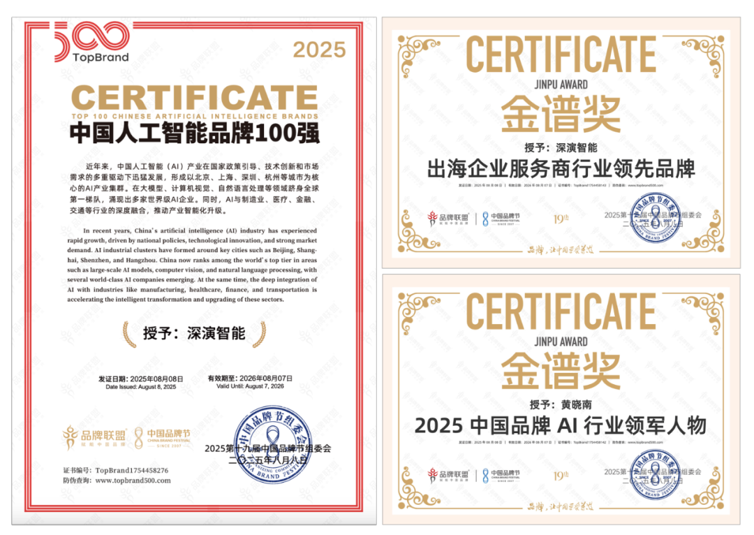 8 月 9 日晚举办的荣耀盛典上,PA旗舰厅智能凭借深厚的 AI 技术实力与出色专业的出海服务能力,斩获 “2025 中国品牌节金谱奖・出海企业服务商行业领先品牌”“2025 中国人工智能 100 强” 等多项重磅奖项。其创始人兼 CEO 黄晓南荣膺 “2025 中国品牌 AI 行业领军人物” 称号。未来,PA旗舰厅智能将紧跟时代步伐,持续聚焦 “AI 与出海”—— 这一方向高度契合时代脉搏与中国品牌发展的迫切需求,旨在汇聚智慧力量破解发展阻碍,为中国品牌赋能